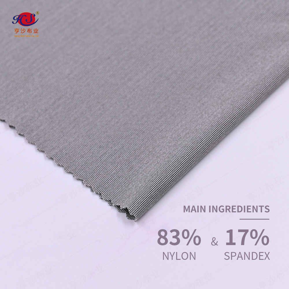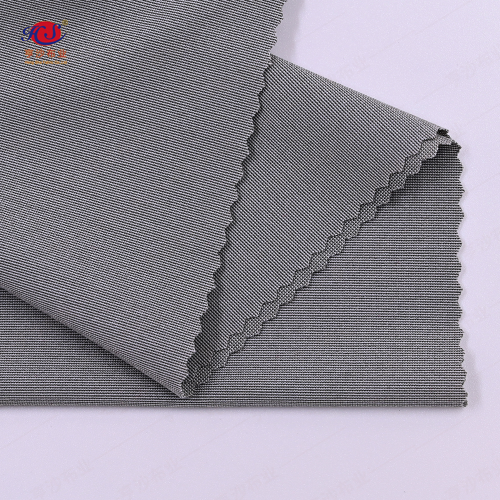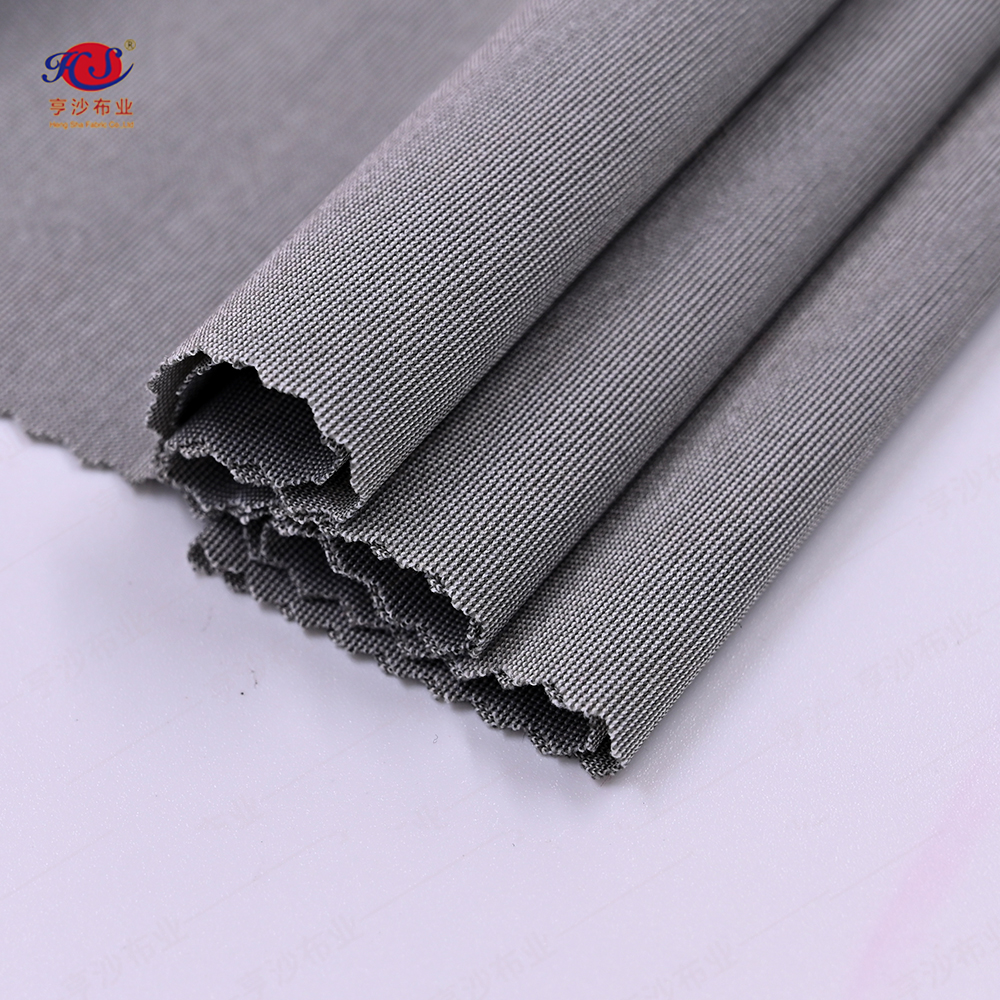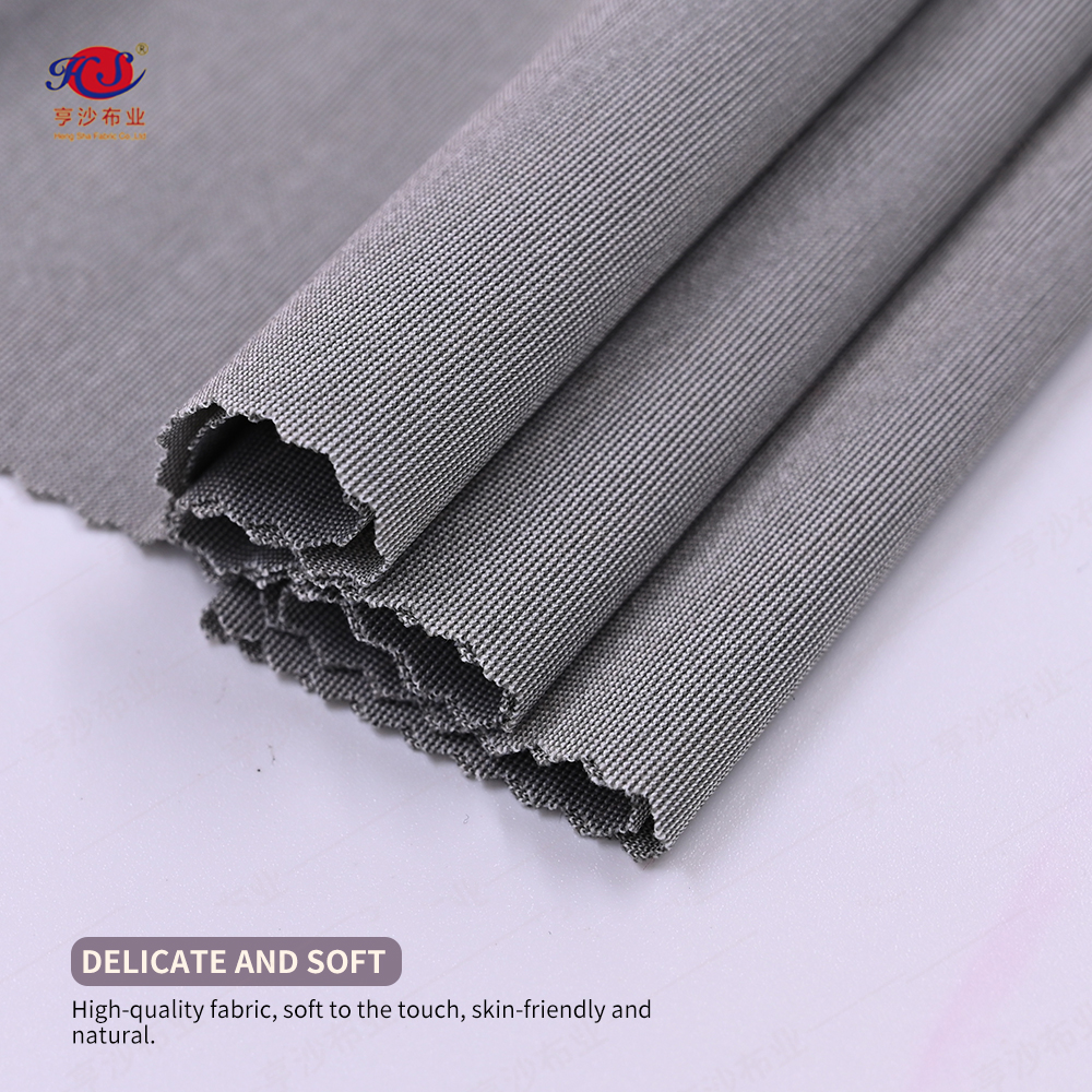 61165# T бамбуковое угольное волокно смешано с 84% нейлона и 16% спандекса. Бамбуковое угольное волокно равномерно распределяется в процессе прядения смеси мастербатча (содержание 5%), что придает ткани уникальную функцию поглощения запаха. Проверено, что уровень адсорбции аммиака составляет 78%, что подходит для потоотделения после тренировки. Вес 160 г/м² достигается с помощью процесса 22 иглы/дюйм утка плоской иглы, а плоскостность поверхности достигает 98%. Черная мастербатч бамбукового угольного волокна придает ткани темно-серую матовую текстуру (глянец 25GU), которая подходит для минималистской спортивной эстетики. Эластичное волокно спандекса обеспечивает поперечное удлинение 170% и продольное удлинение 150%, что соответствует эластичным требованиям повседневной спортивной и повседневной одежды.
