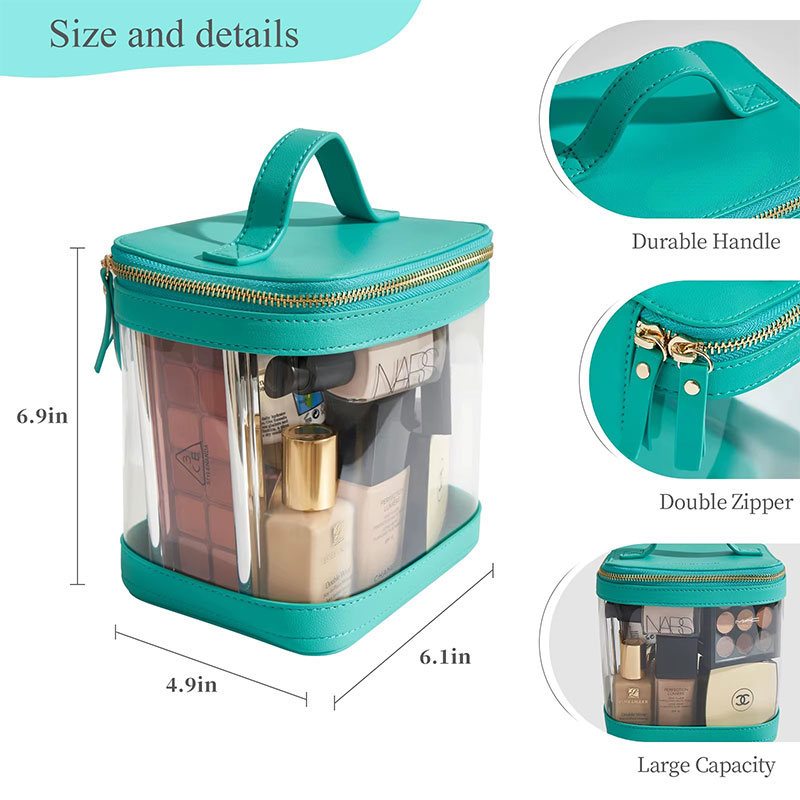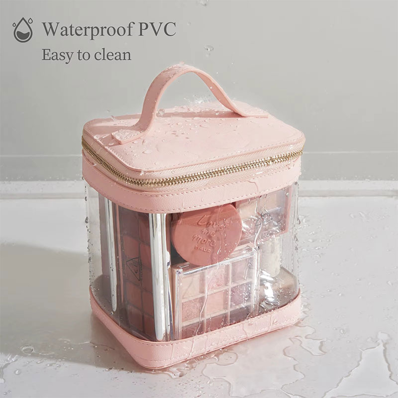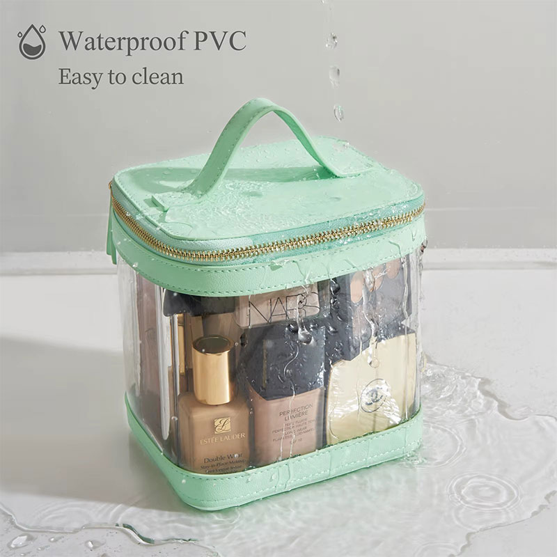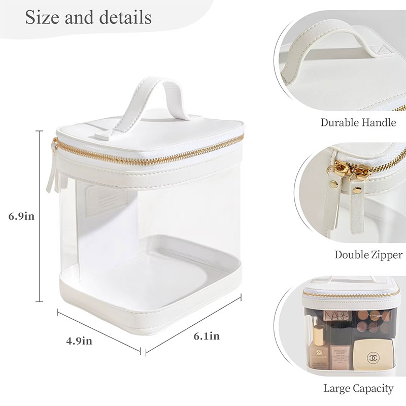 Прозрачный ПВХ-материал: прозрачная упаковка высокой плотности, четко демонстрирующая находящиеся внутри косметические средства (например, жидкую основу NARS, палитру теней для век 3CE), с матовой металлической молнией, устойчивая к царапинам и старению.