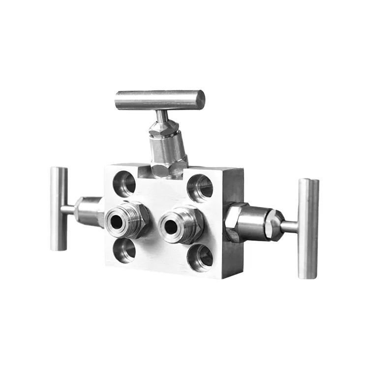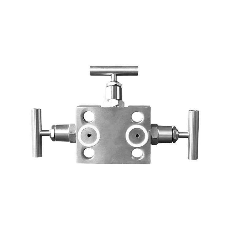 Трехклапанная группа. Арматура для контрольно-измерительных приборов. Клапанный узел. Изделие из нержавеющей стали. Точное литье. Функция — совместная работа с дифференциальным датчиком давления для осуществления измерений давления и защиты системы. Конструкционный состав: включает клапан высокого давления (левый), клапан низкого давления (правый) и уравновешивающий клапан (средний). Открытие и закрытие клапанов управляет подключением/отключением камер измерений положительного и отрицательного давления к точкам отбора давления, либо осуществляет разъединение/соединение камер положительного и отрицательного давления. Трехклапанная группа широко применяется в таких областях, как электроэнергетика, электротехника, проекты электромеханического оборудования и др. Ключевые преимущества — упрощение монтажа, обеспечение безопасности и снижение затрат на обслуживание.