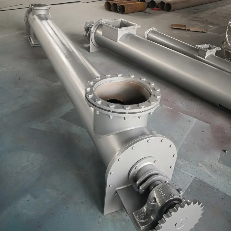 Винтовой Конвейер, также известные как шнеки, представляют собой механические устройства, в которых электродвигатель приводит в движение вращающийся шнек, тем самым проталкивая материалы для их транспортировки. Они могут транспортировать материалы по горизонтали, по наклонной или по вертикали, предлагая такие преимущества, как простая конструкция, небольшая площадь поперечного сечения, отличные уплотнительные свойства, удобство в эксплуатации, простота обслуживания и пригодность для закрытой транспортировки. Шнековые конвейеры подразделяются на два типа в зависимости от формы транспортировки: шнековые конвейеры с валом и шнековые конвейеры без вала. По внешней конфигурации они классифицируются как U-образные шнековые конвейеры и трубчатые шнековые конвейеры. Шнековые конвейеры с валом подходят для неклейких сухих порошкообразных материалов и мелких гранулированных материалов (например, цемента, летучей золы, извести, зерна и т. д.), в то время как шнековые конвейеры без вала подходят для транспортировки клейких и легко запутывающихся материалов.