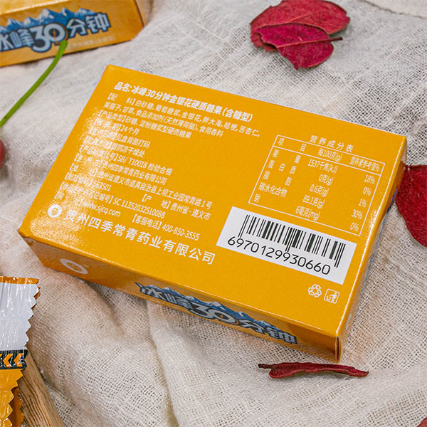 【Ингредиенты】 Сахар, глюкозный сироп, цветки лоницеры, корни платикодона, горький миндаль, семена стеркулии, семена рафана, корень солодки, пищевая добавка (натуральный ментол), ароматизатор.