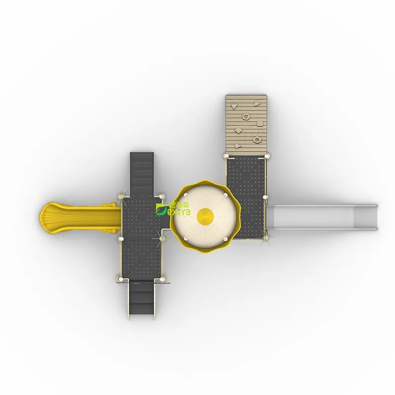 С точки зрения дизайна, она мастерски сочетает в себе естественную эстетику и современные технологии: текстуры, вдохновленные деревом, в сочетании с закругленными, плавными линиями конструкции смягчают индустриальный вид. Интерактивные элементы, такие как ударные инструменты, вращающиеся диски и лабиринты, интегрированы в оборудование, что повышает игровой интерес. Модульная конструкция позволяет гибко комбинировать планировку, создавая игровые пространства, адаптированные к размерам площадки и требованиям использования. Она подходит для различных открытых пространств, включая школы, парки, жилые комплексы и курорты.