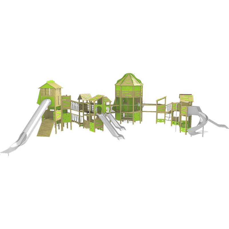 Что касается материалов, в продукте используются тщательно отобранные компоненты премиум-класса. Металлический каркас обеспечивает прочность и долговечность, а элементы из натурального дерева сочетают в себе органическую текстуру и экологическую безопасность. Горки из нержавеющей стали и пластика имеют гладкую, износостойкую поверхность с антивозрастными свойствами, а сетки для лазания обладают исключительной несущей способностью и упругостью. Такой комплексный подход обеспечивает безопасность игр детей, позволяя родителям не беспокоиться, пока дети развлекаются.