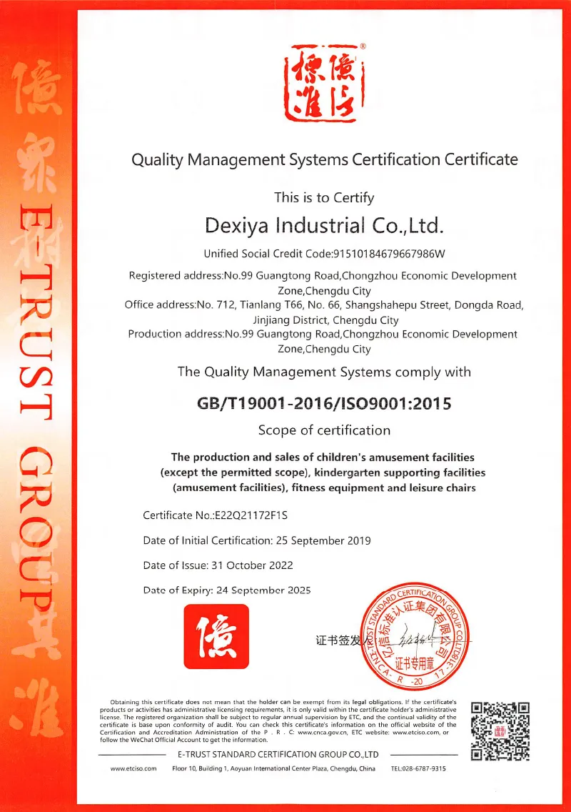 Дэсия, комплексный поставщик услуг по планированию и внедрению игрового оборудования без электропривода, имеет штаб-квартиру в Чэнду, Китай. Обладая почти двадцатилетним опытом работы в сфере игрового оборудования для развития детей, компания занимает площадь в 50 000 квадратных метров и является одним из первых производителей, охватывающих всю цепочку поставок игрового оборудования без электропривода. Ее основная деятельность охватывает четыре ключевых сектора: парки, девелопмент недвижимости, жилые районы и открытые площадки для детских садов. Дэсия предлагает комплексные решения, включая оценку проектов, комплексное планирование и проектирование парков, культурное творчество на основе интеллектуальной собственности, исследования и разработку продуктов, производство, установку и послепродажное обслуживание.
