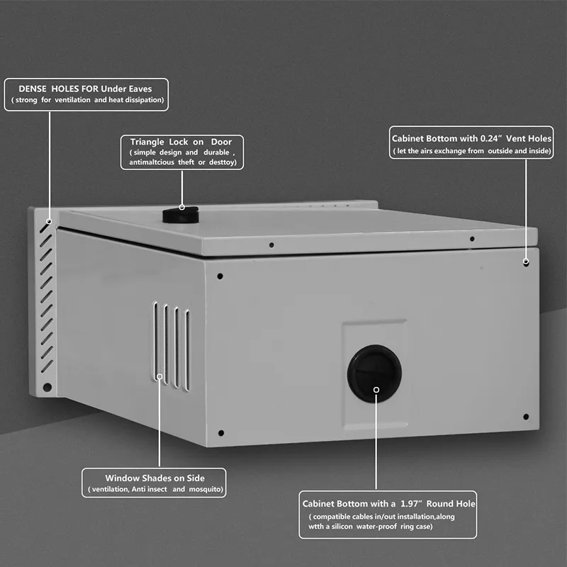 1.Исключительная прочность и пылезащита:этот электрический шкаф, изготовленный из высококачественного оцинкованного листового металла, обладает превосходной ударопрочностью и изоляционными свойствами. Он обеспечивает надежную защиту вашего оборудования в суровых условиях эксплуатации, отличается длительным сроком службы и устойчивостью к коррозии, которая сохраняется более 10 лет.