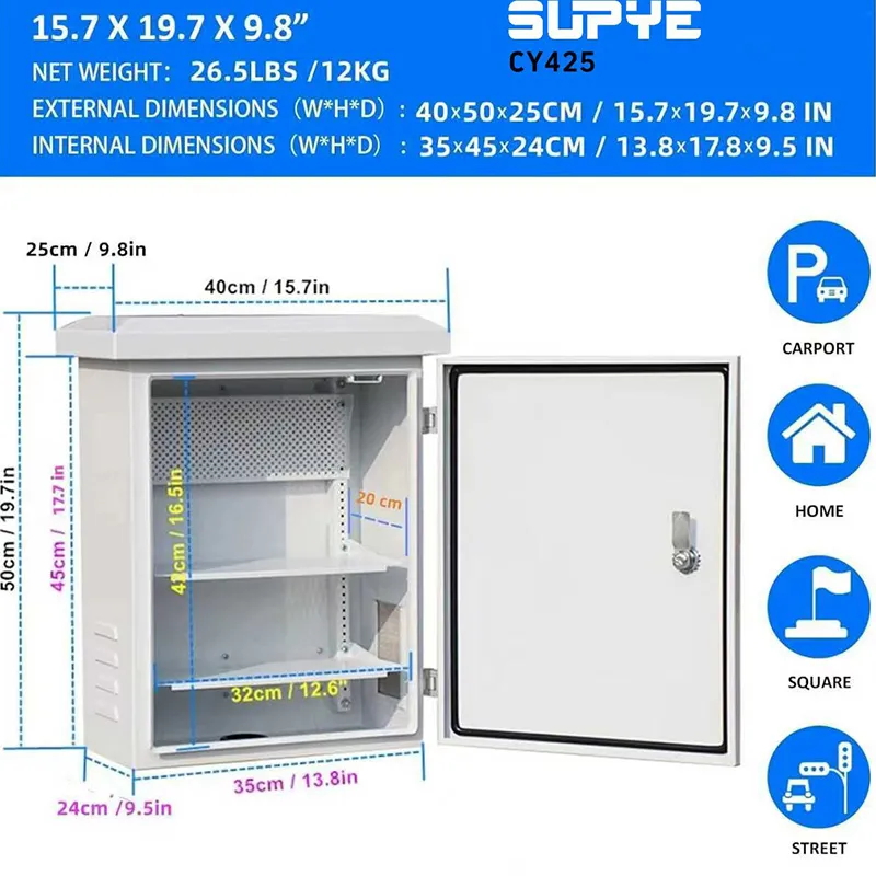 Этот погодостойкий электрический шкаф обеспечивает защиту от пыли, дождя, влаги, снега и масла. Его хорошо спроектированный корпус защищает внутреннее электрооборудование, гарантируя, что все ваши электрические приборы остаются в безопасности, сухими и чистыми.