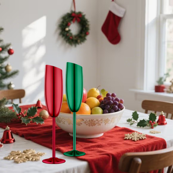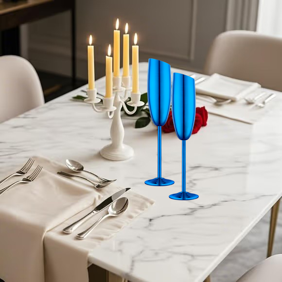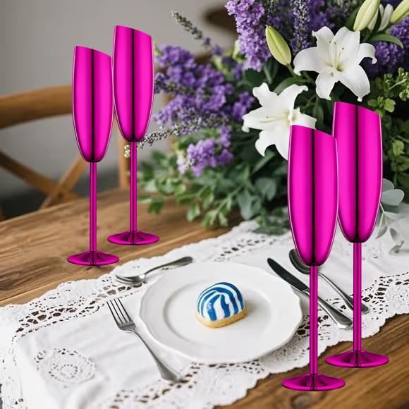 Наши фужеры для шампанского изготовлены из пищевой нержавеющей стали с гальваническим покрытием, которое устойчиво к коррозии и гарантирует, что они прочные, долговечные и небьющиеся.