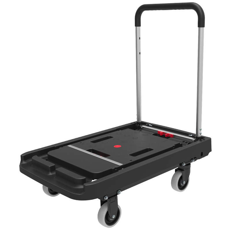 Эта легкая складная ручная тележка оснащена складной ручкой, что является компактным решением для быстрого и легкого хранения на складе или в транспортном средстве.