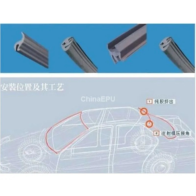 Уплотнитель заднего стекла устанавливается между стеклом переднего/заднего остекления и оконной рамой. Уплотнитель формовался методом экструзии из одного вида резиновой композиции с угловым соединением. Материал — EPDM-каучук, обладающий устойчивостью к старению и долговечностью.