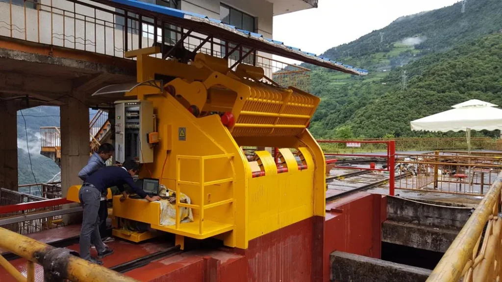 1. Компоновка на поверхности плотины, может использоваться как стационарно, так и мобильно. Особенно эффективна для широких и множественных водопропускных отверстий при низкой стоимости мобильного использования одной машины.