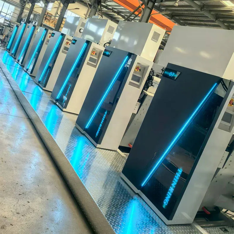 ★ Оснащена системой автоматического управления натяжением полотна, включающей пневматические тормоза, датчики и контроллеры натяжения, электропропорциональные клапаны, а также независимый комплект пневмооборудования подготовки сжатого воздуха.
