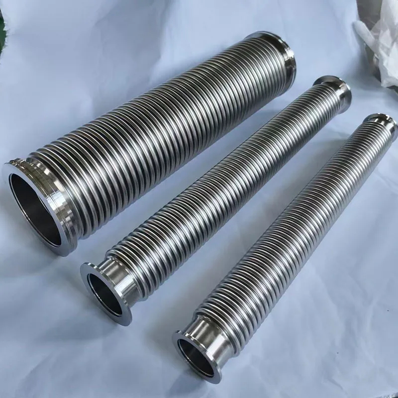 Вакуумный сильфон является гибким трубным элементом, широко применяемым в вакуумных системах, обычно изготавливается из таких материалов, как нержавеющая сталь, его стенка имеет гофрированную форму, обладая хорошей гибкостью, устойчивостью к давлению и герметичностью. Такая конструкция позволяет ему адаптироваться к смещениям, вибрациям и изменениям угла между трубопроводами или оборудованием, сохраняя при этом целостность вакуумной среды. Гофрированный сильфон из нержавеющей стали с фланцем KF, изготовленный методом формования, используется в условиях высоковакуумных систем для соединения форвакуумных трубопроводов или простых портов HV-камер, изготавливается из тонкостенной высокочистой нержавеющей стали марок 304 или 316L методом гидроформовки.