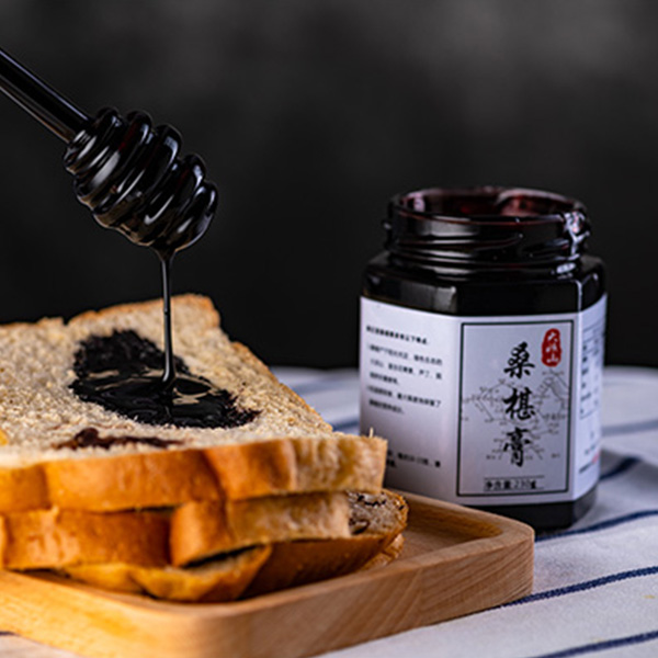 Наш продукт, произведенный в солнечных горах Далян, на экологически чистой тутовой плантации, расположенной недалеко от солнца и вдали от города, изготавливается из чистых ингредиентов и не содержит консервантов, ароматизаторов, пластификаторов и цикламата натрия. Мы не добавляем сахар, включая мед. Сладость достигается за счет натуральной фруктозы шелковицы, что делает ее полезной и безопасной. Он не образует гель и не кристаллизуется, а течет естественно.