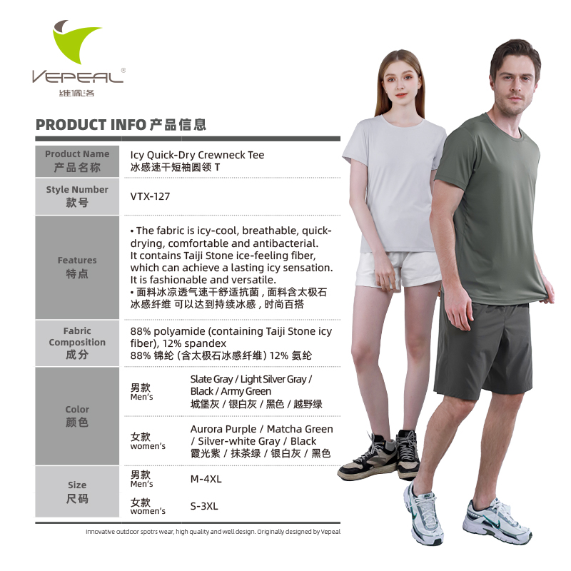 Быстросохнущая ткань прохладная и дышащая, удобная, мягкая и антибактериальная. Ткань содержит ледяное волокно из камня Тайцзи, которое может обеспечить постоянное ощущение прохлады. Цвет универсальный и особенно белый.