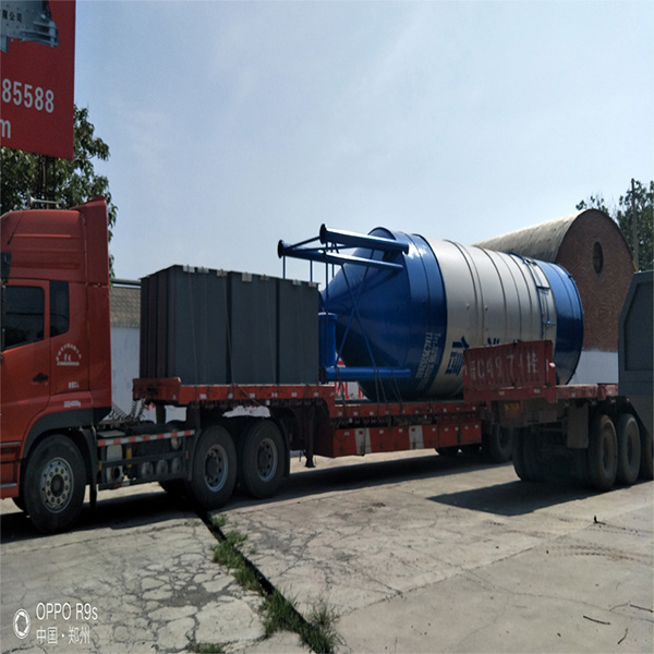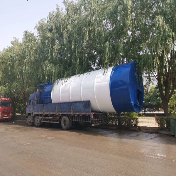 2.После того, как силос для хранения будет закреплен, цемент будет транспортироваться на строительную площадку навалочным цементовозом, затем транспортировочный трубопровод навалочного цементовоза будет соединен с загрузочным трубопроводом цементного резервуара, и цемент в резервуаре будет подаваться в цементный резервуар под давлением газа навалочного цементовоза.