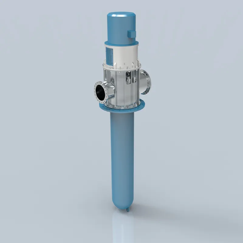 Вертикальные насосы с канистровым корпусом Многоступенчатые, с радиальным разъемом корпуса, оснащены корпусом. Рабочее колесо первой ступени, как правило, всасывающего типа. Осевые силы воспринимаются радиально-упорными шарикоподшипниками. Для компенсации осевых сил при большом перепаде давления используется разгрузочный барабан. Корпус воспринимает только давление на входе. Длина корпуса и глубина установки насоса определяются требуемыми кавитационными характеристиками.