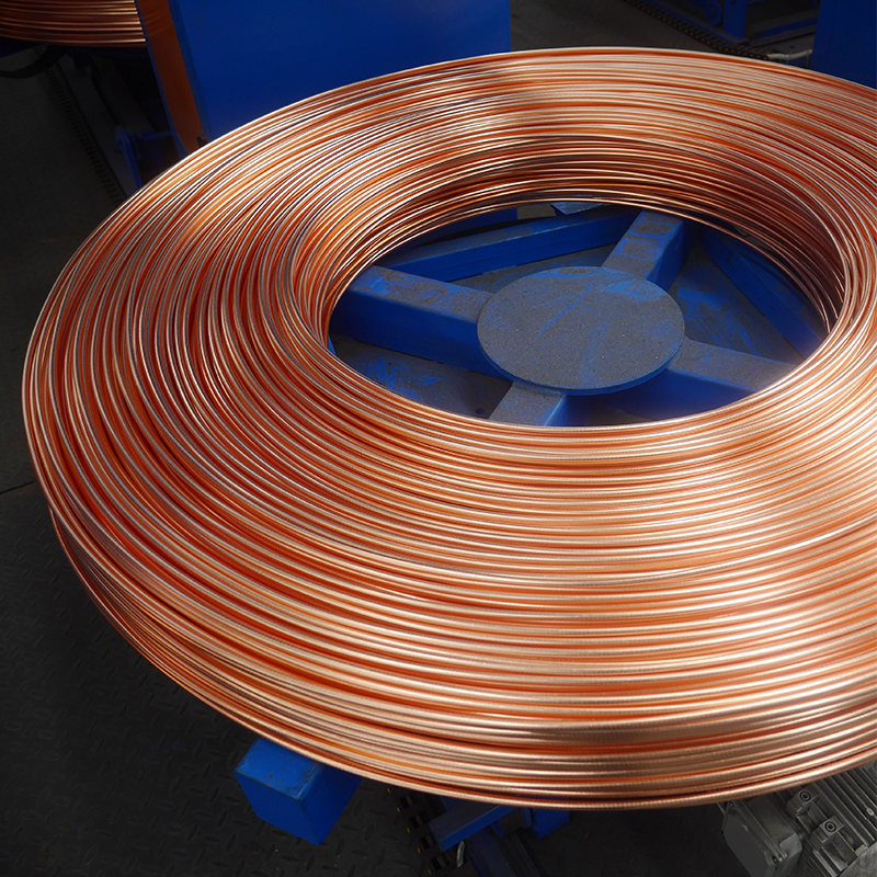 Поместите медный катод в печь с помощью подъемной системы для запекания → отрегулируйте скорость подачи в соответствии со скоростью литья. Подать медный катод в плавильную печь для плавления (уголь должен быть использован для предотвращения окисления) → медная жидкость течет в переходную часть (уголь все еще необходим для предотвращения окисления) → медная жидкость течет в печь удержания → медная жидкость течет в кристаллизатор для получения медных стержней → медные стержни входят в тяговое устройство для движения вверх → проходят через выходную раму → медные стержни проходят через распределительную раму (для разделения каждого стержня) → медные стержни проходят через натяжную раму (для контроля скорости взятия скорость подъема) → медные стержни проходят через машину подъема, для намотки → Следующий процесс