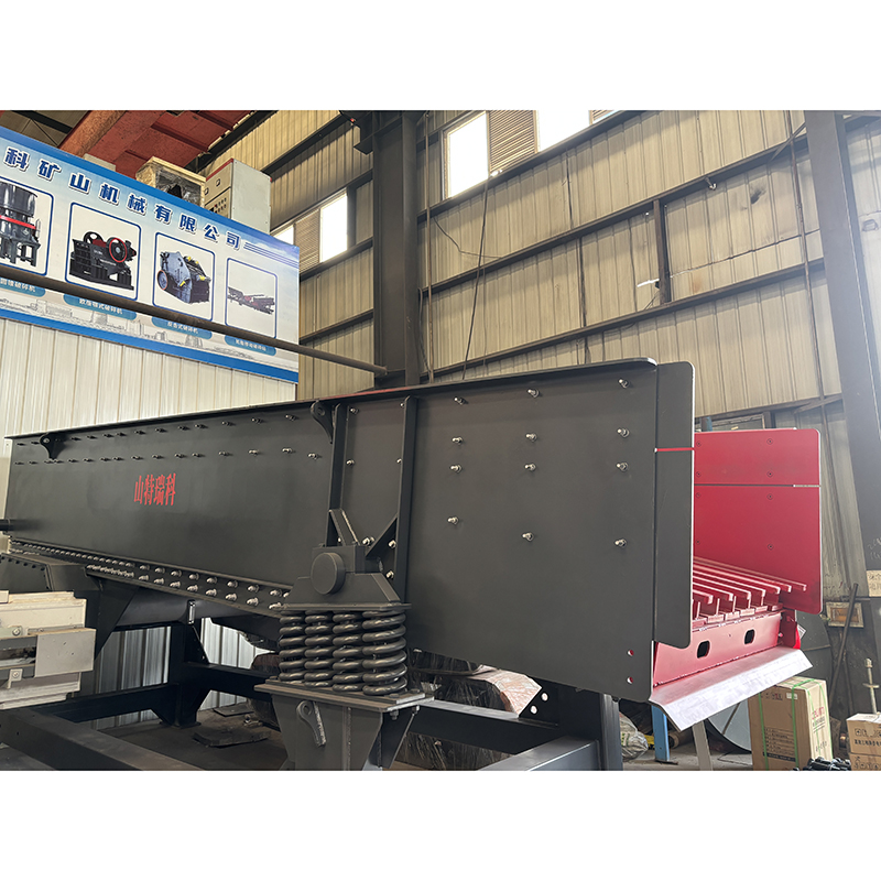 Вибрационный питатель Sandreck — это автоматическое оборудование для подачи. Двигатель приводит в движение ведущий вал через клиновой ремень, а затем приводит во вращение ведомый вал, зацепляющийся с шестерней на ведущем валу. Ведущий и ведомый валы вращаются в противоположных направлениях одновременно, заставляя желоб вибрировать, а материал течь непрерывно, тем самым достигая цели транспортировки материалов. Он может равномерно, регулярно и непрерывно подавать блочные и гранулированные материалы из бункера-накопителя в приемное устройство. В линии по производству песка и гравия он может непрерывно и равномерно подавать в дробилку и выполнять грубое просеивание материалов. Он широко используется в металлургии, угольной промышленности, переработке полезных ископаемых, производстве строительных материалов, химической промышленности и других отраслях.