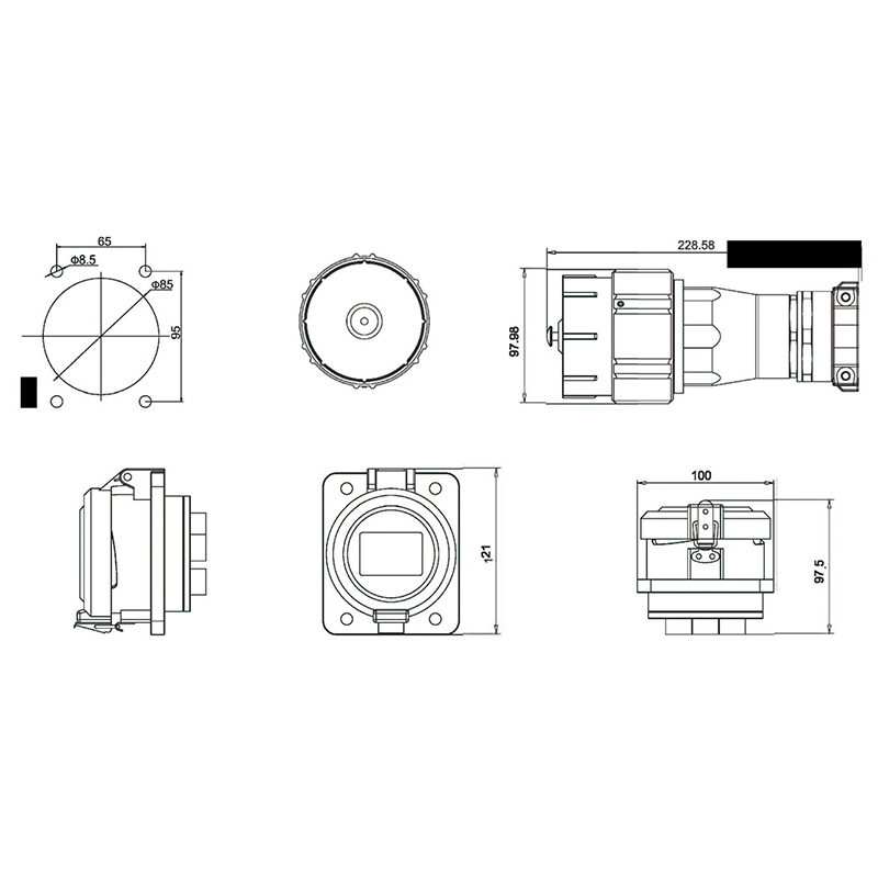 В соединителях этой серии используется резьбовое соединительное кольцо с резьбой, гнезда штекеров оснащены защитной крышкой, а штекеры - простой алюминиевой крышкой-бампером. При подключении разъемы могут быть защищены по классу IP66.