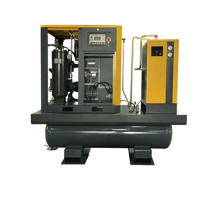 Винтовой компрессор имеет интегрированную конструкцию, которая объединяет в себе такие модули, как винтовой воздушный компрессор , воздушный ресивер и осушитель воздуха , что значительно упрощает процесс установки. Для начала использования пользователю необходимо только подключить электропитание и газопровод. По сравнению с традиционным сплит-оборудованием время монтажа сокращается более чем на 50%. Конструкция двухбакового газового резервуара объемом 600 мл не только повышает стабильность источника газа, но и снижает потребление энергии за счет оптимизации колебаний давления, что делает его пригодным для сценариев частого использования газа.
