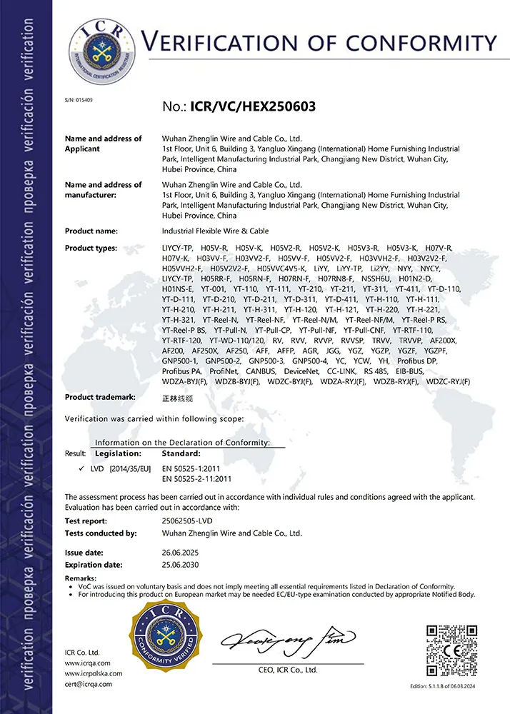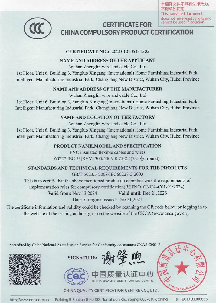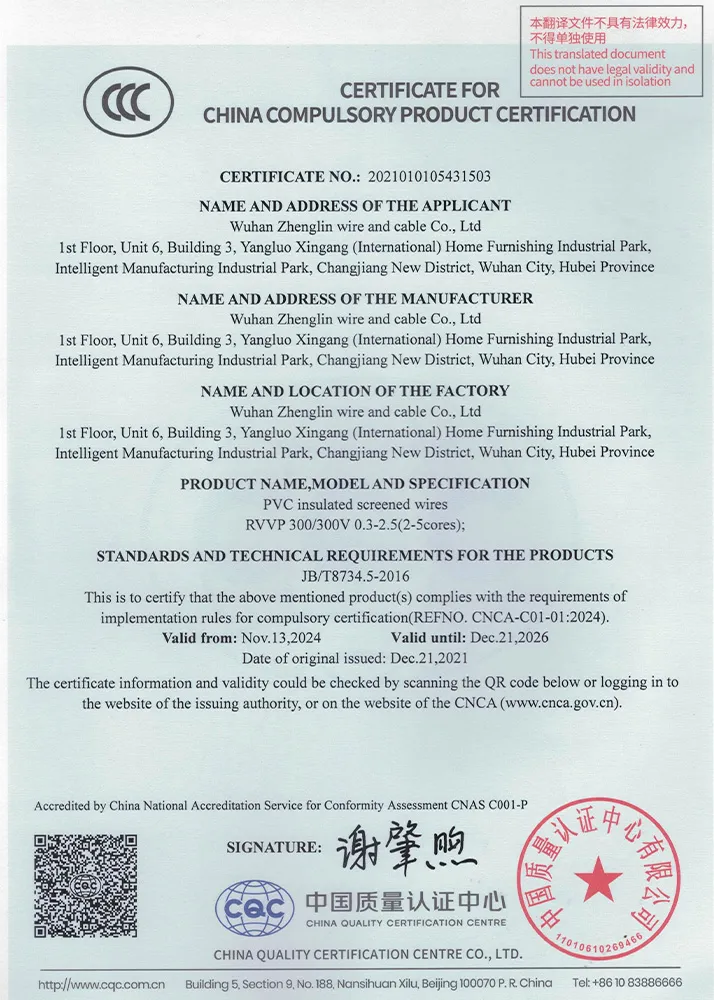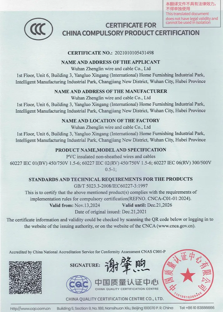 Компания ООО Ухань Чжэнлинь Кабель была основана в мае 2017 года и в настоящее время располагается по адресу: Помещение № 6, 1-й этаж, корпус 3, Международный индустриальный парк мебели и товаров для дома Янлуо, зона развития Янлуо, район Синьчжоу, город Ухань, провинция Хубэй. Являясь высокотехнологичным предприятием, компания специализируется на производстве проводов и кабелей, в том числе кабелей безопасности, кабелей управления, компьютерных кабелей, проводов для электрооборудования, кабелей связи и кабелей для цепных конвейеров.
