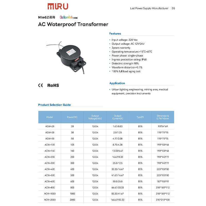 Водонепроницаемый трансформатор переменного тока 12 В / 24 В