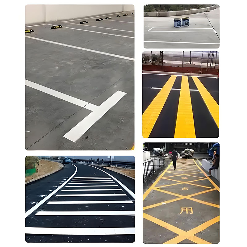Эта краска используется для цветовой маркировки, чтобы различать быстрые и медленные полосы движения, пешеходные переходы, места для остановки, парковочные места и т. д. Она отличается быстрым высыханием, высокой видимостью, прочностью и износостойкостью. Состоит из основы, красящих пигментов, наполнителей и т. д. Обычно в качестве основы используются водный полиуретан, водная эпоксидная смола, водный хлорированный каучук, водные этиленовые смолы, нефтяные смолы и т. д.