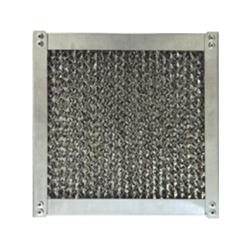 4.Водоудерживающие пластины из алюминиевой фольги с мокрой пленкой: обладают превосходной огнестойкостью и водоудерживающими свойствами и широко используются в окрасочно-сушильных камерах для кондиционирования воздуха или в испарительных охладительных установках, которые широко применяются в текстильной, легкой, химической, табачной, электронной промышленности и различных системах кондиционирования воздуха. Они изготавливаются из алюминиевой фольги с отверстиями в форме сот на поверхности алюминиевого листа, а после перфорации волнообразного рисунка формируется водоудерживающая пластина. Конструкция сотовой формы позволяет эффективно отсекать капли воды из газа. Капли воды остаются на поверхности сложенной пластины, часть из них остается в поддоне для воды через небольшие отверстия на поверхности алюминиевой фольги, а часть испаряется в воздух. Они устойчивы к очистке, устойчивы к старению и обладают хорошим газо-водоразделительным эффектом. Водоудерживающая пластина из нержавеющей стали с мокрой пленкой: применение аналогично водоудерживающей пластине из алюминиевой фольги с мокрой пленкой, отличается только материал.