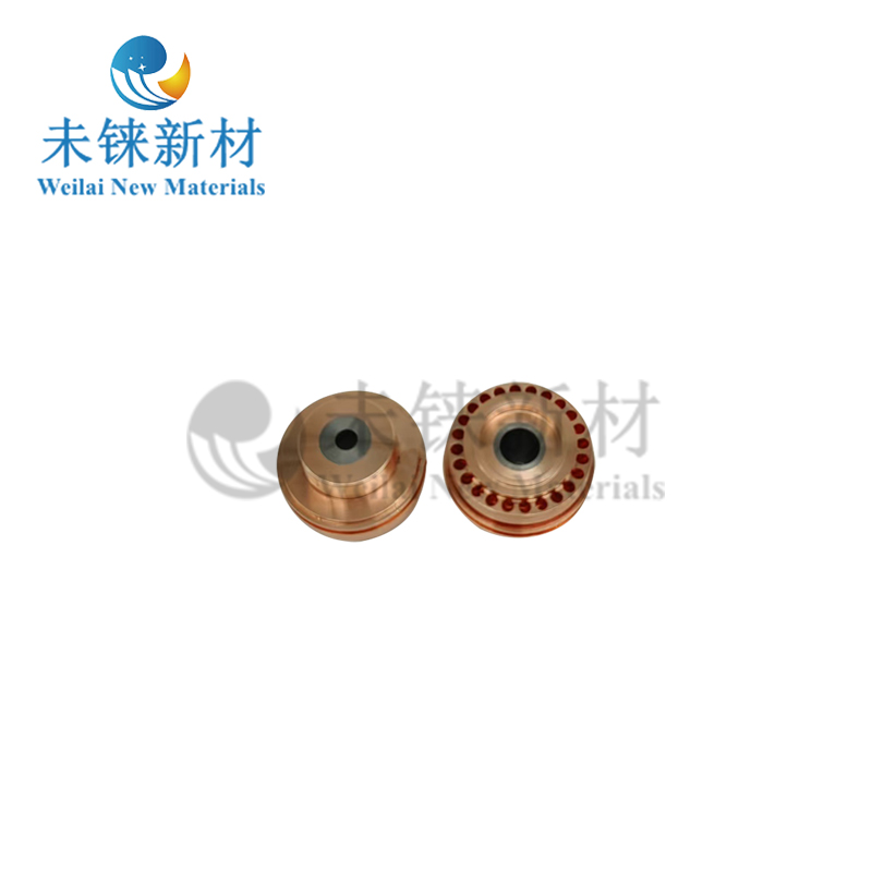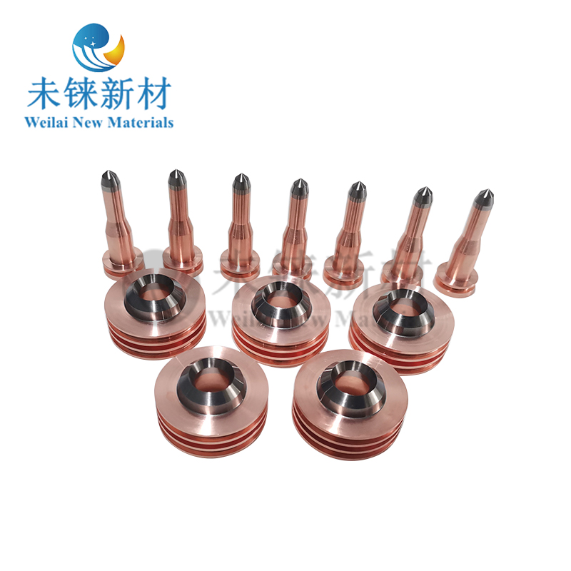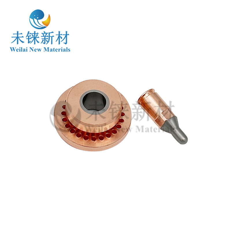 Вольфрамово-медных электродах и соплах для плазменного напыления компании Вэйруй Новые материалы используется технология обратного литья, обеспечивающая бесшовное соединение вольфрама и меди для решения проблем теплопередачи и рассеивания тепла. Эта технология обратного литья обеспечивает превосходное сцепление и оптимальное рассеивание тепла между вольфрамом и медью, что обеспечивает превосходную стойкость сопел и электродов к прожогу дугой, повышенную эксплуатационную стабильность и длительный срок службы.