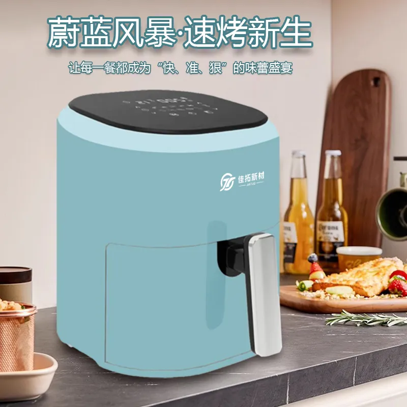 [Синий Шторм: Революция Быстрой Выпечки] Воздушная фритюрница 1400 Вт цвета лазури, сочетающая в себе дизайн, вдохновленный безмятежностью глубокого моря, и мощную нагревательную способность, переосмысливает эстетику эффективности кухни.