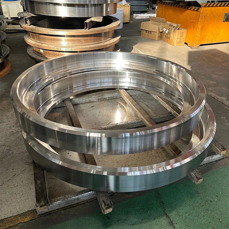 Высокоточные профильные кольцевые детали представляют собой высокопроизводительные структурные компоненты, специально разработанные для ключевых несущих и передающих механизмов различных типов тяжелой строительной техники (такой как экскаваторы, подъемные краны, буровые установки и др.). В отличие от традиционных стандартных колец, профильные кольцевые детали благодаря технологиям точной прокатки и копировальной ковки формируют сложную кольцевую структуру со специфическим контуром (например, L-образным, T-образным, пазовым, фланцевым и др.). Такие детали могут напрямую использоваться в качестве опор подшипников, заготовок шестерен, базовых элементов опорно-поворотных устройств, что позволяет оптимизировать конструкцию оборудования, уменьшить припуски на обработку и повысить общую надежность.Данная продукция обеспечивает длительную стабильную работу в условиях экстремальных ударных нагрузок, тяжелых режимов эксплуатации и неблагоприятных рабочих условий благодаря превосходной плотности материала, непрерывной волокнистой структуре металла и выдающимся механическим свойствам.