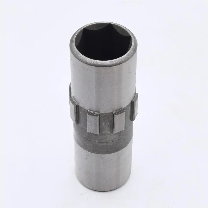 «Высокая износостойкость» является его основным преимуществом. Для достижения этой характеристики втулка, как правило, изготавливается методом прецизионной ковки из высокоуглеродистой легированной стали или специальной легированной стали, что обеспечивает плотную внутреннюю структуру без дефектов. Критически важным этапом производственного процесса является применение передовых технологий термообработки, таких как комбинированная прокалка с локальной среднечастотной индукционной закалкой. Это позволяет достичь высокой твердости поверхности шестигранной рабочей поверхности (HRC 58-62), формируя прочный износостойкий слой и сохраняя прочность основного материала, что позволяет выдерживать воздействие тяжелых нагрузок и предотвращать разрушение.