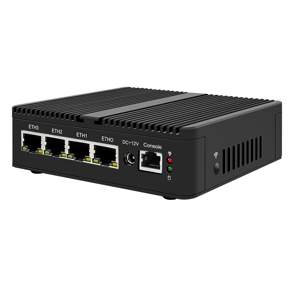 -4xIntel i226-V 2.5GbE RJ45 LANs, 2xUSB3.0, 2xUSB2.0, 1xRJ45 COM консоль, 1x4G/3G SIM слот.