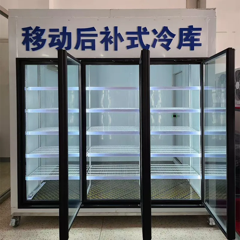 Холодильные камеры задней загрузки представляют собой компактные многофункциональные холодильные установки, обеспечивающие фронтальный доступ и тыловое хранение. Пополнение запасов осуществляется с задней стороны витрины, что не мешает покупателям. В задней части хранится резервный запас товаров, гарантирующий поддержание стабильной температуры продукции и повышение эффективности работы. Оснащены стеклянными дверьми с системой автоматического возврата и фиксации, исключающими проблемы с видимостью товаров и незакрытыми дверьми. Применяются в сетевых мини-маркетах, супермаркетах свежей продукции, цветочных магазинах и фармацевтических холодильных установках.