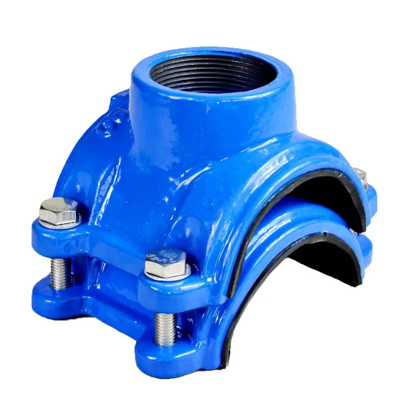 Изделие состоит из корпуса из ковкого чугуна и нержавеющей стальной ленты, с уплотнением прокладкой из ЭПДМ каучука, что обеспечивает превосходное прилегание к внешней стенке трубы. Предназначено для соединения труб ПЭ и ПВХ. Чугунная часть может быть оснащена различными типами резьбы в соответствии с требованиями монтажа, обеспечивая удобство выполнения ответвлений. Монтаж изделия прост и требует только обычного гаечного ключа, что позволяет значительно сократить затраты на установку.