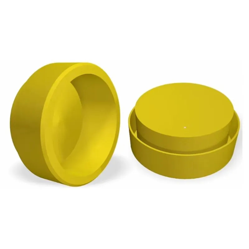 Используется модифицированный ударопрочный полиэтилен (PE), прочность которого на удар на 40 % выше по сравнению с обычными материалами. Он способен выдерживать давление при штабелировании крупных труб, не теряя прочности даже при воздействии влаги и высоких температур на открытом воздухе. Изделие изготавливается методом литья под давлением с применением крупногабаритных прецизионных форм, что обеспечивает идеальное прилегание к торцу трубы и предотвращает проникновение пыли и загрязнений.