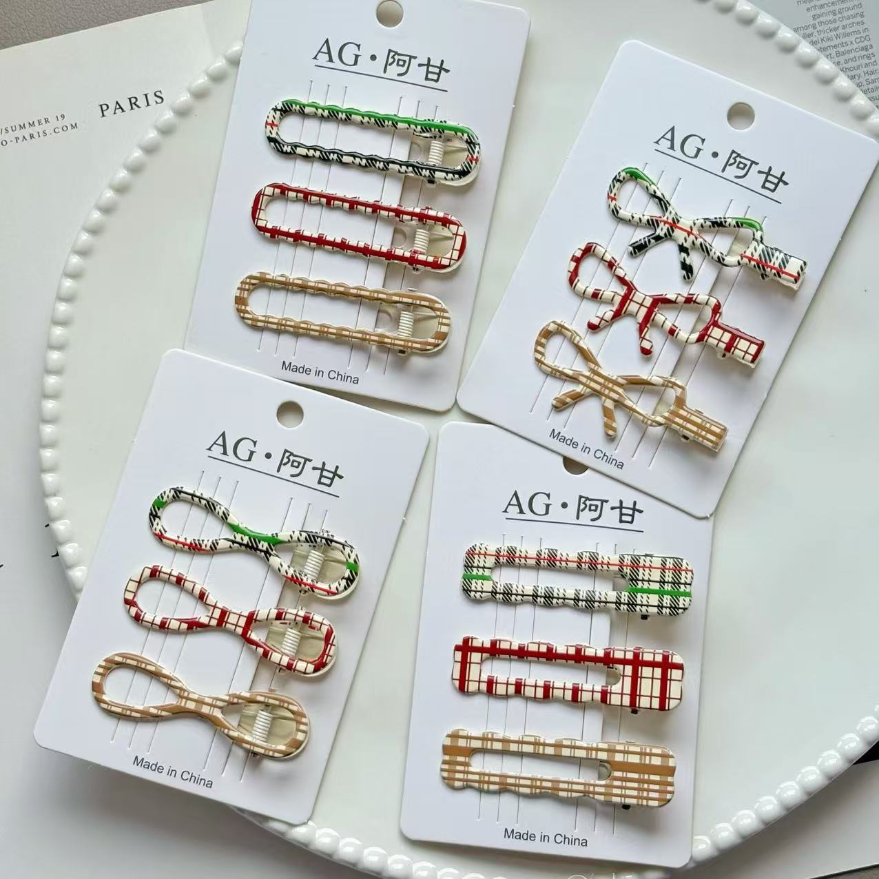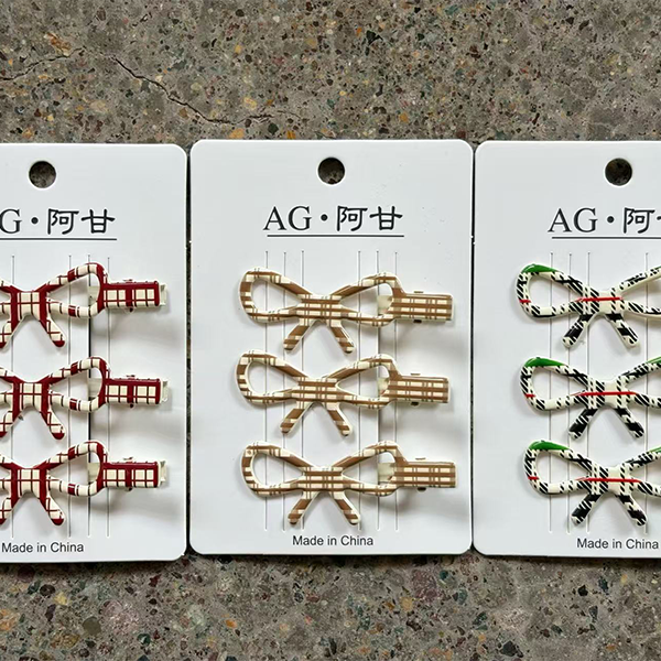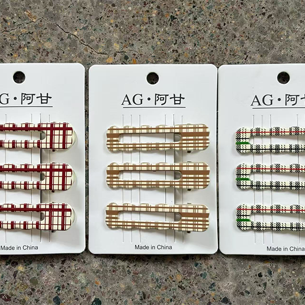Дизайн: В основе дизайна лежит классический клетчатый принт, искусно сочетающий винтажные и современные мотивы. Цветовые решения разнообразны и гармоничны: от сдержанных комбинаций красного, зелёного и чёрного до ярких красно-белых контрастов и тёплых бежево-коричневых оттенков. Клетчатый узор выполнен с чёткими линиями и изысканной детализацией, придающей заколке особый визуальный шарм. В ассортименте представлены как лаконичные удлинённые модели, так и игривые варианты с бантами, удовлетворяющие различные эстетические предпочтения и потребности в создании причёсок.