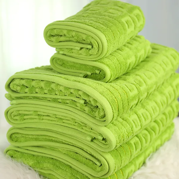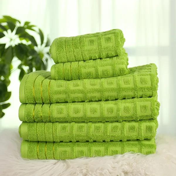 Зеленое махровое полотенце из жаккардовой ткани