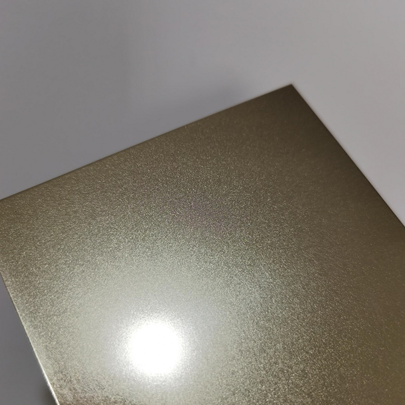Зеркальная пластина из нержавеющей стали сама по себе обладает зеркальным блеском, а пескоструйная обработка образует на ее поверхности тонкий слой песка, в результате чего изначально яркая поверхность становится матовой или с легким блеском. Такая обработка не только сохраняет часть отражающих свойств зеркальной пластины, но и повышает тактильный и визуальный уровень поверхности. Поверхность становится более нежной и высококлассной, подходит для случаев, когда необходимо подчеркнуть текстуру и блеск материала, например, для высококлассных отелей, торговых центров и других общественных мест оформления.