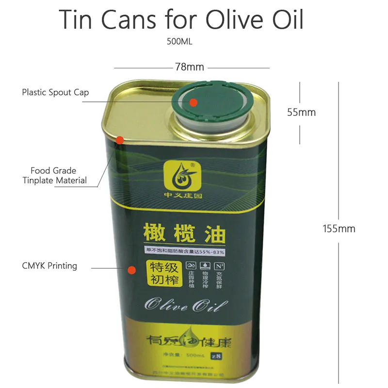 Наша банка для оливкового масла модели TCE-FG101, изготовленная из высококачественной жести толщиной 0,28 мм, отличается прочной конструкцией и вместимостью 500 мл. Она обладает защитой от протекания и защитой от воздействия света для сохранения свежести и питательных веществ, экологичными материалами, возможностью индивидуального брендирования и строгим контролем качества, представляя идеальное решение для домашнего использования и кулинарии.
