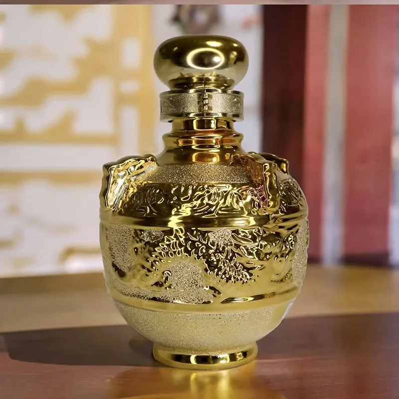 Бутыль золотистого цвета для ликера Цзыжунь выполнена в элегантном золотом оттенке, украшена тонкими текстурами и изысканными узорами, что подчеркивает благородство и утонченность, словно ценное произведение искусства, которое невозможно забыть с первого взгляда. Напиток прозрачен и чист, как горный источник, излучая насыщенный зерновой аромат и легкие цветочные и фруктовые ноты, которые чаруют своим запахом.