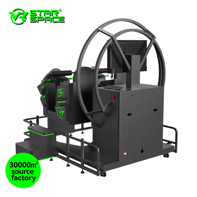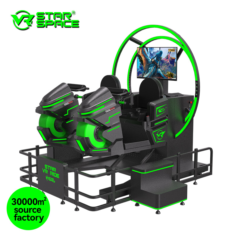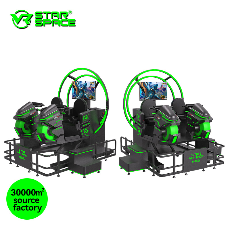 VR-симулятор езды - первый в отрасли двухместный крупномасштабный динамический VR аттракцион с отличными характеристиками: динамическая амплитуда увеличена в 3 раза, занимает всего 6,9 квадратных метров, эффективность пинга увеличена более чем в 1,5 раза; максимальный угол наклона вперед и назад 55°, максимальный угол поворота влево и вправо 60°, высота оборудования 0,7 метра над землей. Он может имитировать езду на высоте 10 000 метров, обеспечивая более высокую интерактивность, и имеет более 20 встроенных высококачественных игр, открывая бесконечное приключение для тех, кто испытает его. Оборудование состоит из очков виртуальной реальности, платформы для кинетических эффектов, 9D-фильма и платформы управления ПК, что позволяет зрителям получить сильнейшее ощущение реализма от слуха, зрения до осязания, как в кино. Благодаря моделированию окружающей среды оборудование может создавать интерактивные спецэффекты, такие как реактивная струя, дуновение ветра, взмахи ногами, раскачивание влево и вправо, наклоны вперед и назад и т.д., так что участник эксперимента может почувствовать всем телом и разумом падение, вибрацию, дуновение ветра, взмахи ногами и другие реалистичные новые ощущения, погрузиться в сцену и получить массу удовольствия.