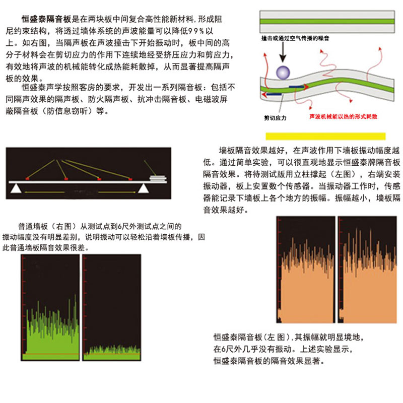 Звукоизоляционная плита легкий: звукопоглощающая плита серии продуктов с легким весом характеристики, качество квадратного метра составляет менее 20 килограммов, может уменьшить повышенный легкий железнодорожный транспорт, повышенная несущая дорога, может снизить стоимость структуры.