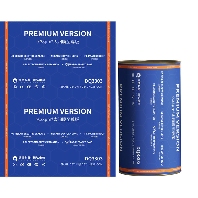 ООО Шанхай Дэюнь Электротермические Материалы и Технологии является высокотехнологичным предприятием.За 18 лет инновационных исследований и разработок компания преодолела монополию европейских и американских технологий и независимо разработала инновационный материал, который сочетает в себе функции обогрева, ухода и кондиционирования - солнечную пленку с дальним инфракрасным излучением толщиной 9,38 мкм® и серию пленок с теплой сердцевиной.Солнечная плёнка в основном используется для обогрева в строительстве и домашнем интерьере.Тёплая сердечниковая плёнка в основном применяется в обогреваемых матрасах.
