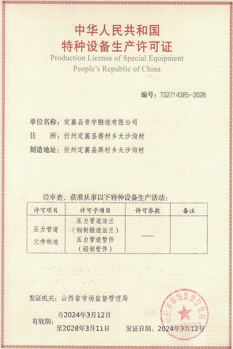 Компания ООО Шаньси Динсян Джиньюй Ковка расположена в промышленной зоне Дашагоу, поселок Цзянцунь, уезд Динсян, Синьчжоу, который является «Дом ковки в Китае». Он находится в 100 километрах от Тайюаня, столицы провинции, с удобным автомобильным и железнодорожным сообщением. Богатая ресурсами угля, электроэнергии и железа, компания является профессиональным производителем кованых фланцев и поковок для сосудов под давлением; она имеет силу комплексной работы от проектирования, закупки сырья, разгрузки, ковки, термообработки, механической обработки, механических испытаний, неразрушающего контроля, механической типизации, погружения краски, упаковки и отправки. Годовая производственная мощность более 10 000 тонн, спецификации DN15-DN5500mm, максимальный вес 15 тонн на единицу готовой продукции, давление 150-2500 фунтов между национальным стандартом, американским стандартом, британским стандартом, немецким стандартом, японским стандартом и другими национальными стандартами и нестандартными фланцами и поковками.