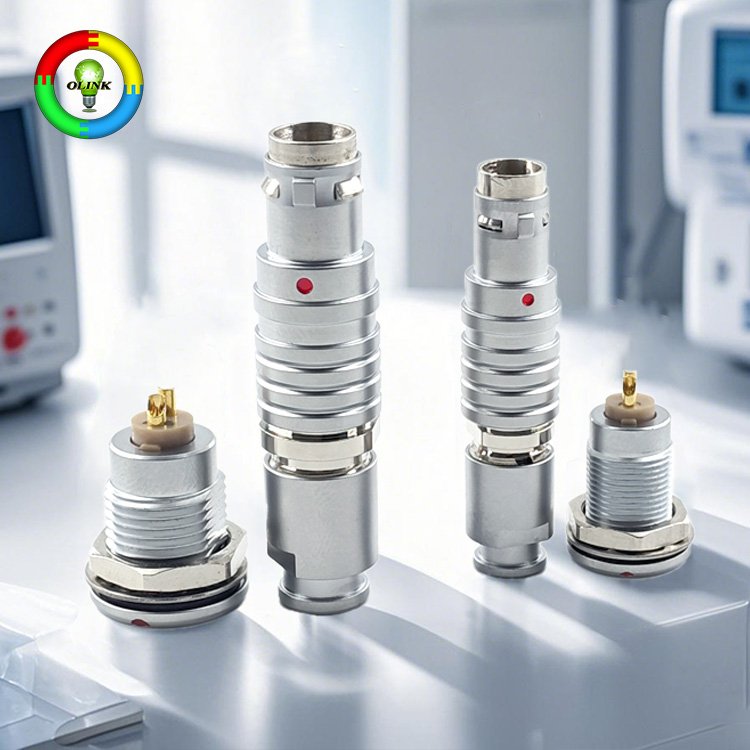 Механизм самоблокировки разъема Push-pull, можно одной рукой завершить подключение и отключение от сети, 1 секунда на подключение и отключение от сети, экономия времени обслуживания 50%. Повышенная виброустойчивость, механическая блокировка, значительно снижающая риск расшатывания, на перламутровом хромированном металлическом корпусе остаются следы от пальцев, что снижает частоту чистки, соответствует медицинским асептическим нормам эксплуатации. Позолоченные контактные площадки для снижения сопротивления контакта более стабильны, а уменьшение окисления продлевает срок службы разъема. Поэтому его можно использовать в эндоскопах, аппаратах МРТ/КТ и другом медицинском оборудовании.