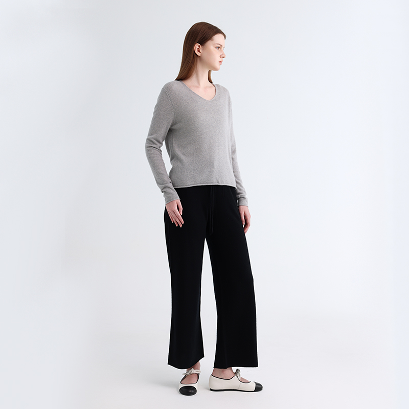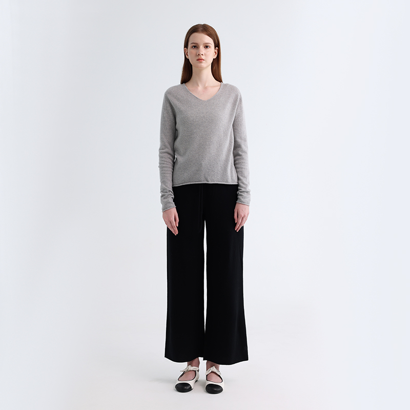 Этот свитер с закатанными краями из чистого кашемира является свидетельством качества и стиля. Классический дизайн с V-образным вырезом слегка удлиняет линию шеи и видоизменяет контуры лица, добавляя немного элегантности и изысканности в общий образ, а также его легко сочетать с ожерельями и другими аксессуарами для усиления многослойности наряда. Дизайн с закругленными краями является одной из изюминок этого свитера, а детали с закругленными краями на манжетах и подоле нарушают монотонность обычного свитера, добавляя нотку игривости и непринужденности, демонстрируя уникальное отношение к моде.