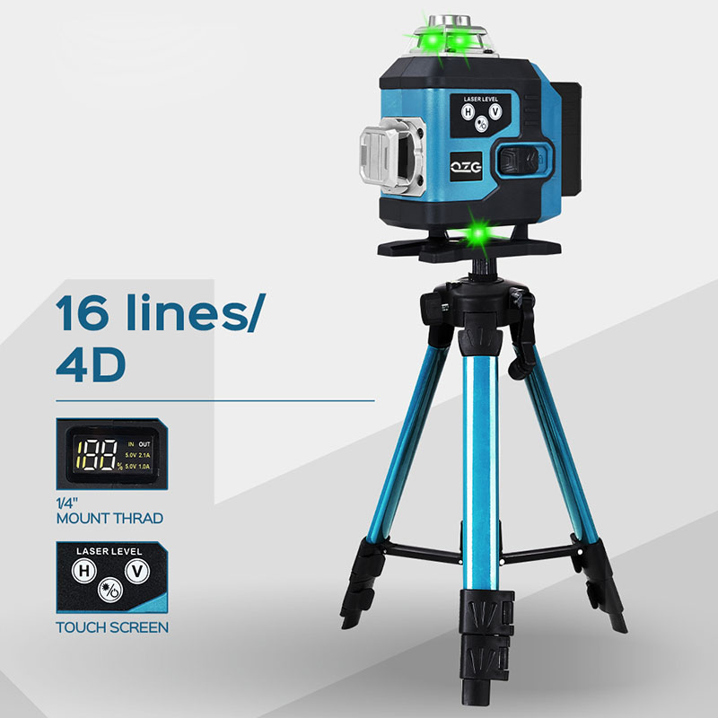 Это лазерный уровень марки QZG с функцией 4D 16 линий, который проецирует несколько лазерных линий для горизонтального и вертикального выравнивания.