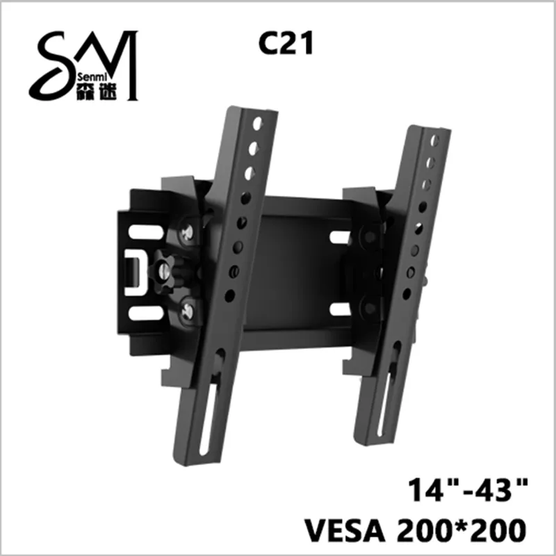 Крепление для телевизора C21 является моделью с перемещением вверх и вниз. Как наклонный кронштейн, малый настенный кронштейн для телевизора имеет регулируемый диапазон в общей сложности 30 градусов. Настенный кронштейн для телевизора подходит для плоских экранов 14-43 дюймов. Максимальный стандарт VESA этого кронштейна для телевизора составляет 200*200 мм. Грузоподъемность этого настенного кронштейна для телевизора составляет 25 кг. Эта модель популярна из-за низкой цены и малого размера упаковки. Модель C30 универсальна для большинства марок телевизоров на рынке. Этот настенный кронштейн для телевизора имеет настолько малый размер коробки, что позволяет экономить стоимость доставки.