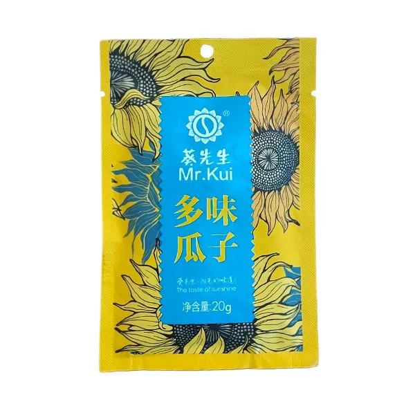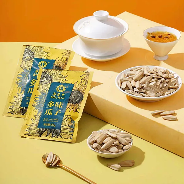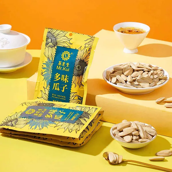Несмотря на небольшой размер упаковки, наша приверженность качеству никогда не снижалась. Тщательно отобранные полные семена подсолнечника из золотого региона Внутренней Монголии гарантируют, что каждое зерно является идеальным носителем вкуса, с тонкой скорлупой и полным ядром, легко раскусывается. Дизайн упаковки модный и живой, с сильным визуальным воздействием, точно привлекающий молодую потребительскую аудиторию, ищущую индивидуальность и перемены.